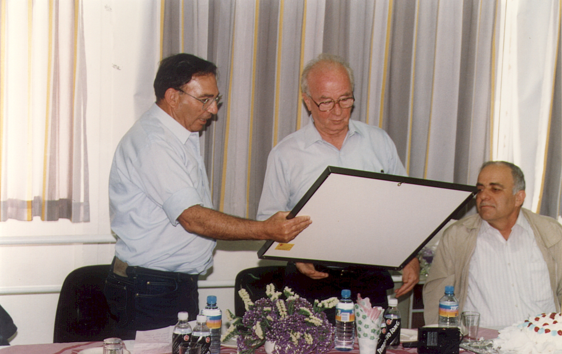 יצחק רבין - ראש הממשלה ושר החקלאות יעקב צור עם שי בן-אליהו ראש המועצה. 11.3.1993