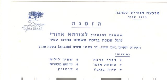 ברכות לקבוצה המגובשת ביותר בערבה אחרי המקהלה...חוג המטיילים – "משוטטי הערבה"החוג החל את פעילותו כתוצאה מהרצון של כמה חברים לטייל בערבה ומחוץ לה. מאחר והמתנ"ס לא נתן תשובה לצורך זה, החלטנו לנסות וליצור מסגרת שתענה על הרצון שלנו. התכנסנו חברים מכל אחד מהמושבים, בידיעה כי קשר טוב עם המטיילים בפוטנציה הוא המפתח להצלחת החוג וכי קשר כזה נוצר באופן טבעי עם חבר מהישוב. איש הקשר הזה מהווה כתובת להעברת אינפורמציה בשני הכיוונים – מהציבור לצוות ומהצוות לציבור. בצוות הראשון היו