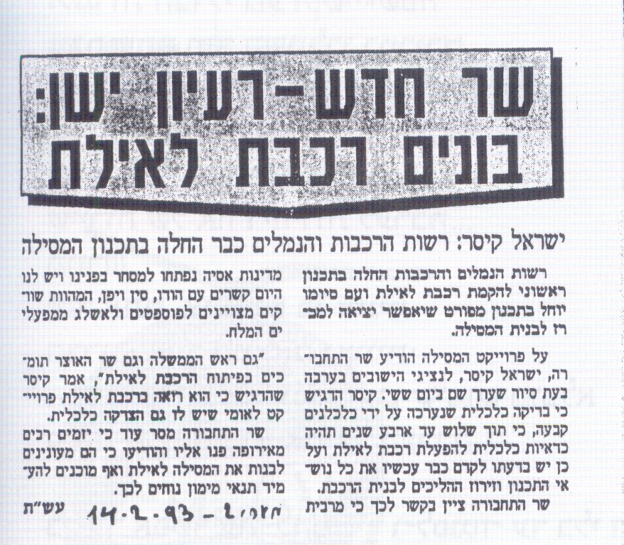"רעיון הקו לאילת עלה לראשונה ע"י גולדה מאיר ב-1974/ שר התחבורה גד יעקובי.