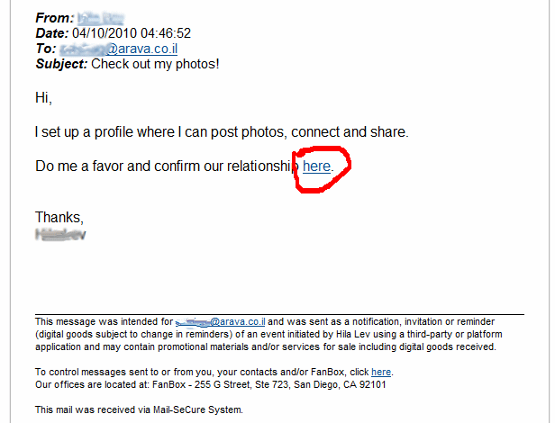 בזמן האחרון מסתובבות ברשת הודעות דומות לאלו המצורפות כאן. שימו לב, שבכל הודעה יש קישור (סימנתי בעיגול אדום):