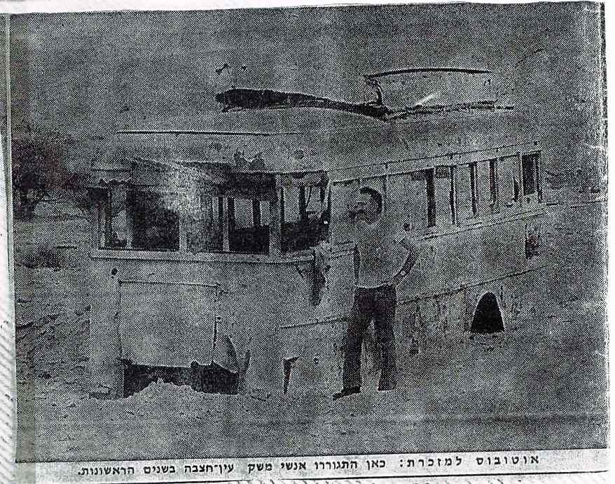 יענקלה סלוין ליד האוטובוס ששמש מגורים לראשוני עין חצבה.